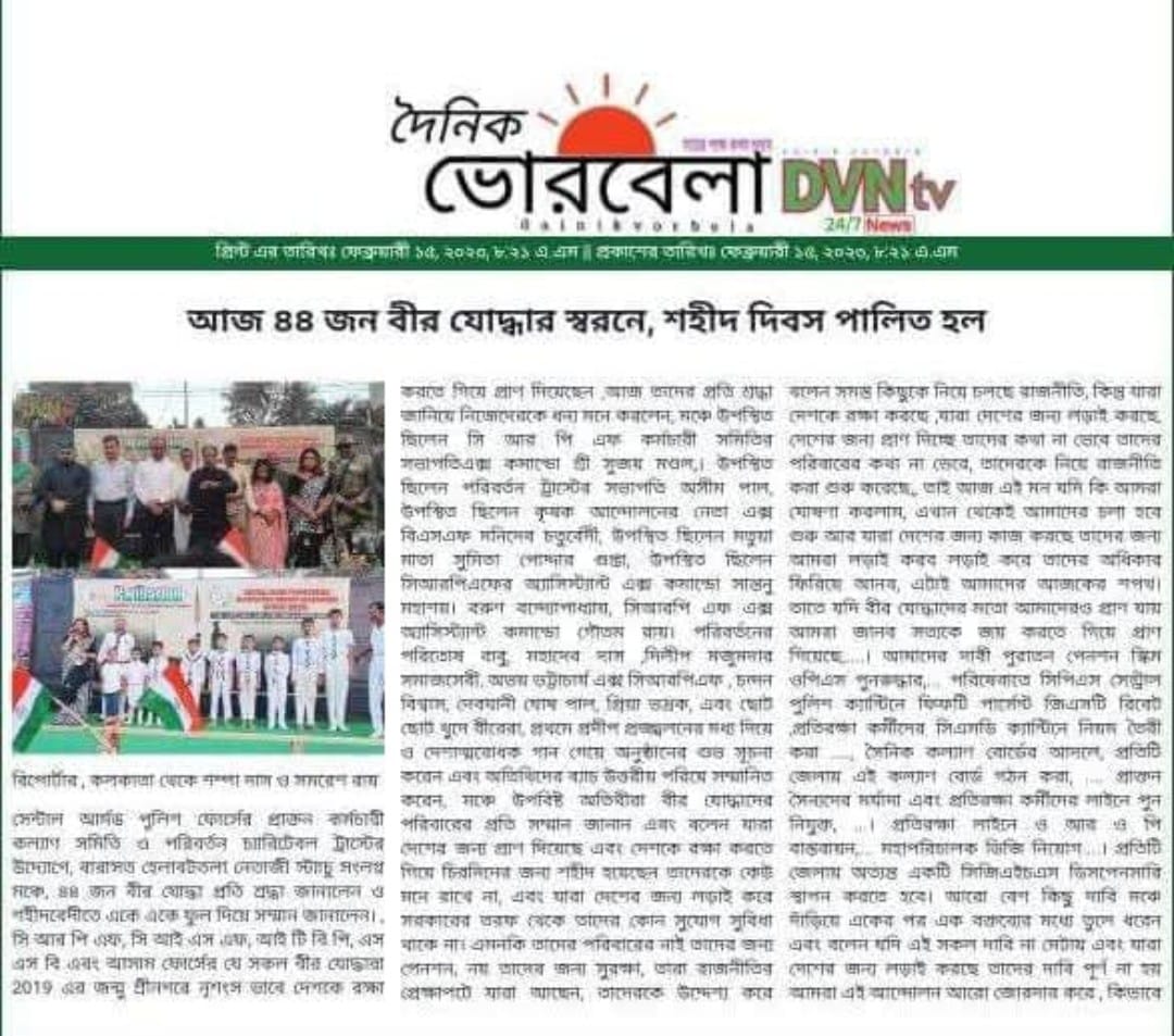 CENTRAL ARMED POLICE FORCE EX EMPLOYEES WELFARE ASSOCIATION OF WEST BENGAL is a non-governmental organization (NGO) established in the year 2012, constituted for the welfare and rehabilitation of Ex-Servicemen (widows), dependents and serving personnel of Central Armed Police Force (Para-Military) and for the benefit of mankind, especially for the economically and socially backward rural people.